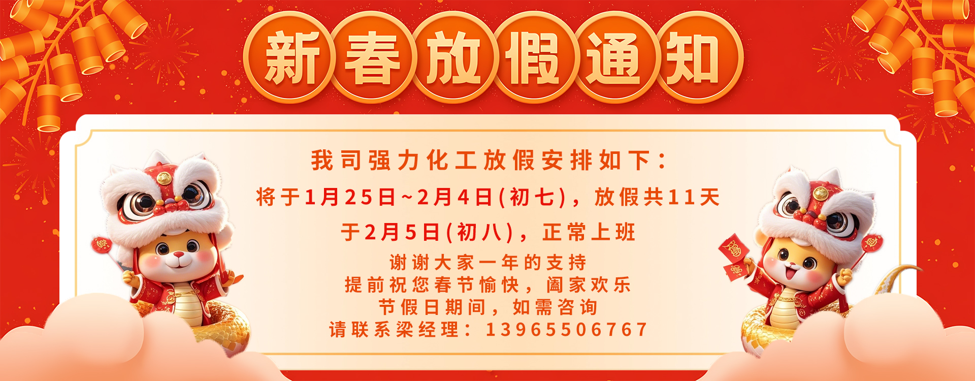強(qiáng)力化工董事長(zhǎng)代表公司給各位新老客戶(hù)拜個(gè)早年。