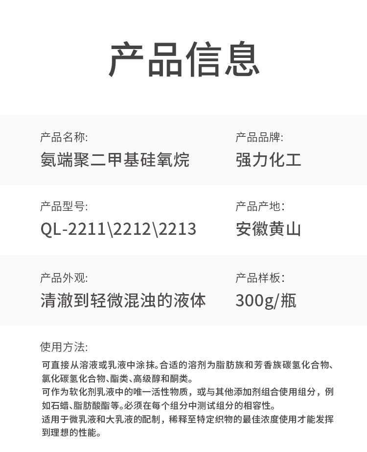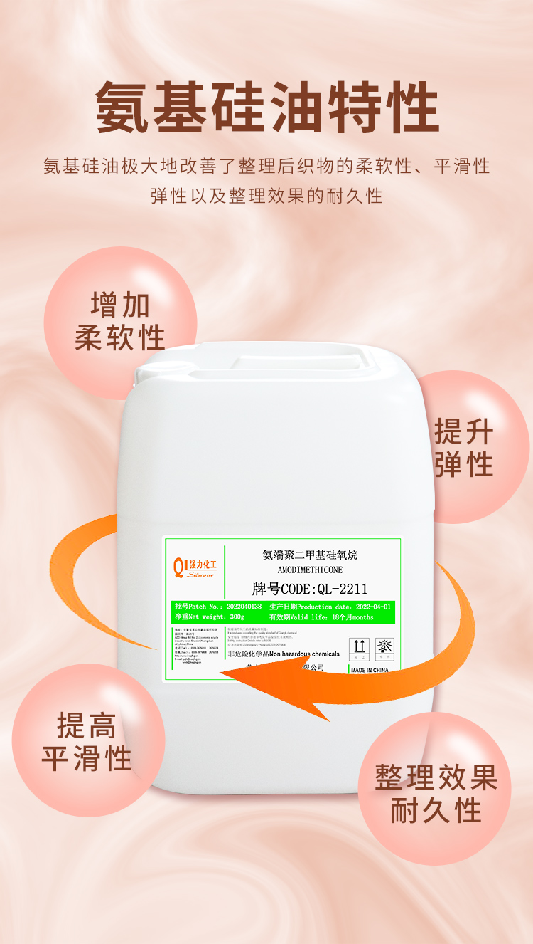 氨基硅油是專門用于紡織品柔軟整理劑的基本成份.它具有最佳的吸附性、相容性及易乳化性.使用混合器或均質(zhì)機,氨基硅油容易被適當?shù)谋砻婊钚詣┤榛煞€(wěn)定、透明的微乳液.它可以單獨使用,也可以與其它有機硅或有機柔軟劑組合成為特殊的柔軟整理劑,適用於各種紡織品的柔軟整理。