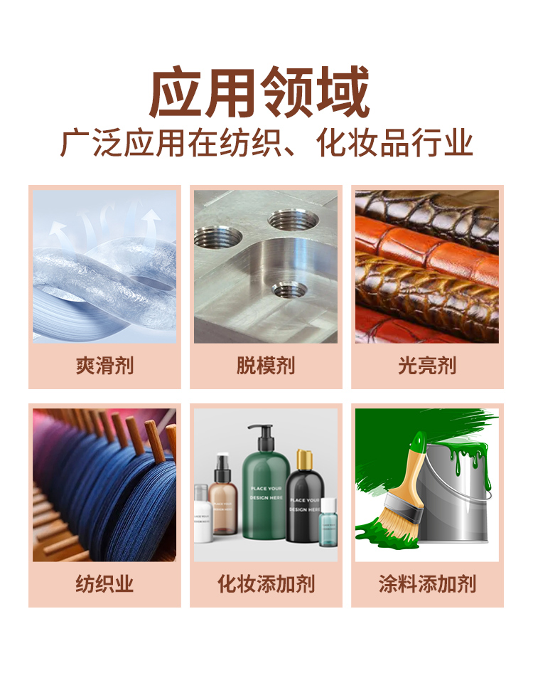 氨基硅油的最大用戶在紡織行業(yè),但由于其潛在的不穩(wěn)定性,給染廠和染整工作者帶來了不少麻煩,如飄油、粘輥、色變以及不可回修性,需要根據(jù)不同場合進行整改配方。氨基硅油在纖維整理、樹脂改性、化妝品和涂料等領(lǐng)域有著廣泛的應用。氨基硅油中的氨基極性強,反應性高,具有吸附性、相溶性,并且易乳化,可與纖維表面活性基團發(fā)生相互作用,提高耐洗性、賦予織物柔軟、防皺等特性,廣泛應用于紡織行業(yè)的纖維后整理劑。除此之外,還可作為涂料添加劑以及化妝品添加劑。