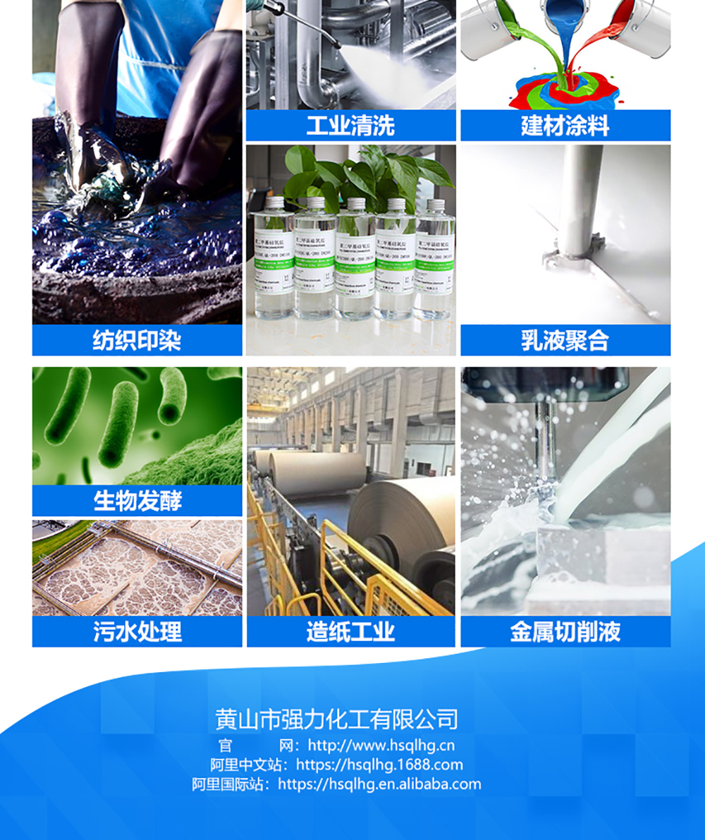 油型消泡劑是直接用硅油作消泡劑。它主要用在那些不允許有分散劑及乳化劑等存在的油相起泡體系中。一般認(rèn)為,不同粘度的硅油。對同一發(fā)泡體系表現(xiàn)出不同的消泡效果。低粘度硅油型消泡劑消泡效果快,但持續(xù)性較差,而高粘度硅油型消泡劑消泡效果慢,但持續(xù)性較好。油膏型消泡劑是在硅油中添加二氧化硅、三氧化二鋁等微粉配成的油膏形態(tài)的消泡劑,主要用于非水體系的消泡。