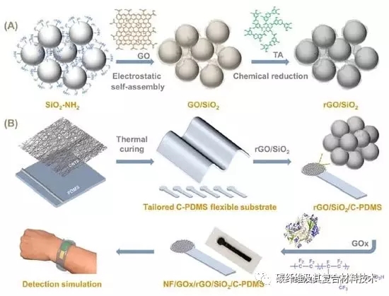 此外,它還可以引入更多的二次傳感材料,從而增強其多功能化能力。使用沉積在碳納米管(CNT)和PDMS復合基底上的rGO涂層二氧化硅(SiO2)納米球、葡萄糖氧化物和Nafion溶液檢測汗液中的葡萄糖?;瘜W電阻氣體傳感器由rGO和氧化鋅(ZnO)納米棒制成。