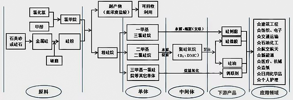 有機硅本身是一種新興的高性能材料,具有優(yōu)異的耐溫特性、耐候性、電氣絕緣性、生理惰性、低表面張力和低表面能等特性,因此具有極大的科研價值及應用潛力,為整個材料工業(yè)提供了材料基礎和技術支撐,被譽為“工業(yè)味精”以及“科技發(fā)展催化劑”??梢灶A料,在未來相當長的一段時期內(nèi),有機硅材料仍將繼續(xù)在建筑工程、紡織、電子、交通運輸、石油化工、航空航天、新能源、醫(yī)療、機械、造紙、日化和個人護理品等關乎人們衣、食、住、行的領域為人類的生活服務。
