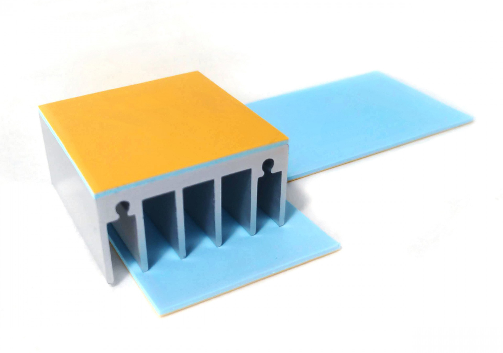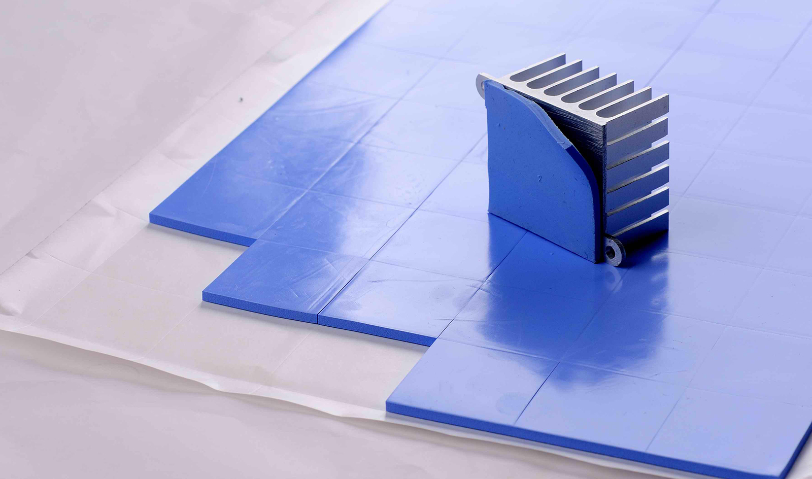 導熱硅膠片只起到導熱作用,在發(fā)熱體與散熱器件之間形成良好的導熱通路,與散熱片,結構固定件(風扇)等一起組成散熱模組。