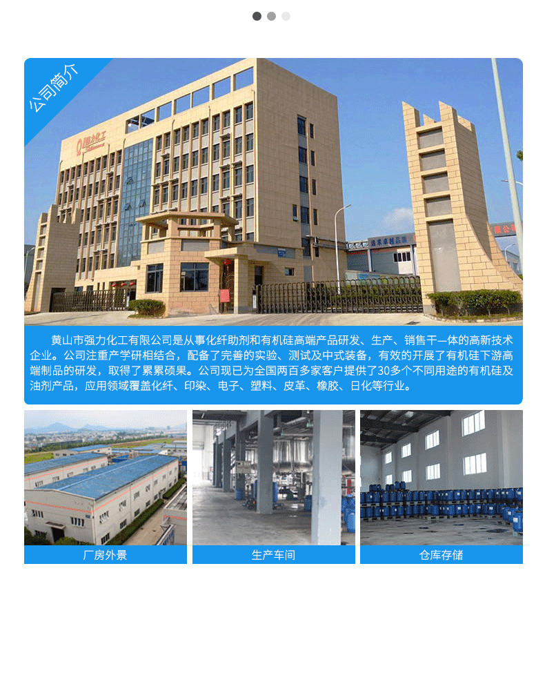 黃山市強力化工有限公司是一家專注于有機硅新材料,集研發(fā)、生產(chǎn)與銷售為一體的綜合性高新技術(shù)企業(yè)。公司已是有機硅行業(yè)內(nèi)較為知名的品牌,傾力于打造高品質(zhì)有機硅產(chǎn)品:二甲基硅油、乙烯基硅油、氨基硅油、乳化硅油、羥基硅油、含氫硅油與紡織品硅油等。砥礪前行,踔厲奮發(fā),強力純硅油,更高技術(shù),更好硅油。